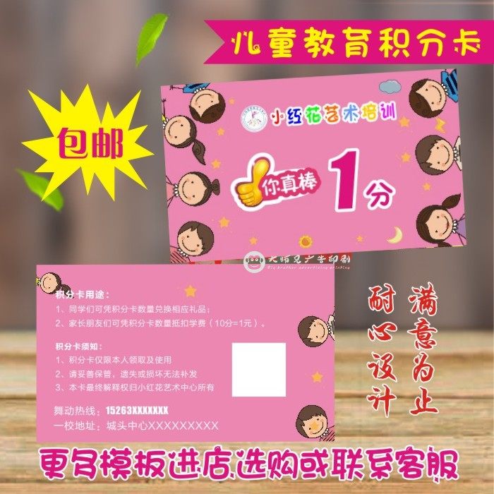 神墨教育积分卡可爱卡通儿童文化培训班综合培训英语奖励卡定制热门设计联盟服务商
