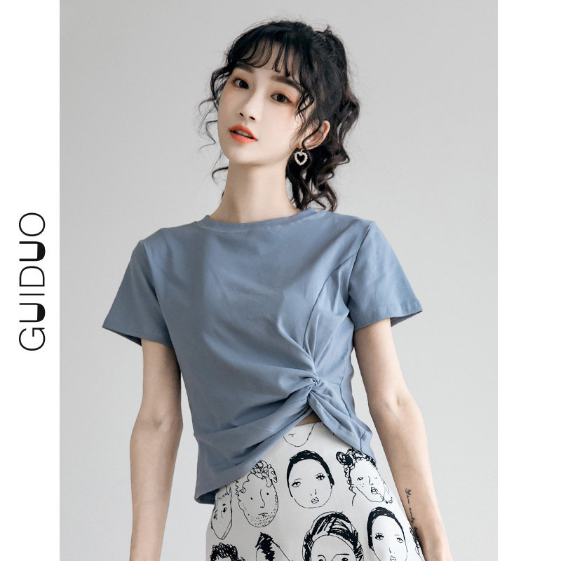 短袖t恤女设计感小众夏季2021年新款百搭高腰修身短款上衣女ins潮热门设计联盟服务商