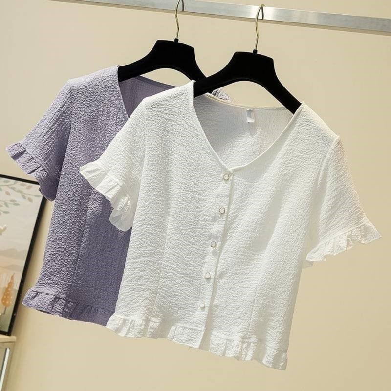 款推荐设计感小众短款V领短袖衬衫上衣女帝裳服饰店热门设计联盟服务商