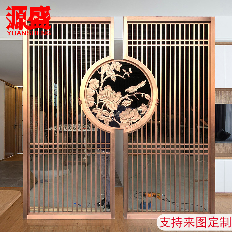 玄关办公室屏风隔断轻奢简易镂空客厅现代铝雕刻小鸟花格装饰格栅热门设计联盟服务商