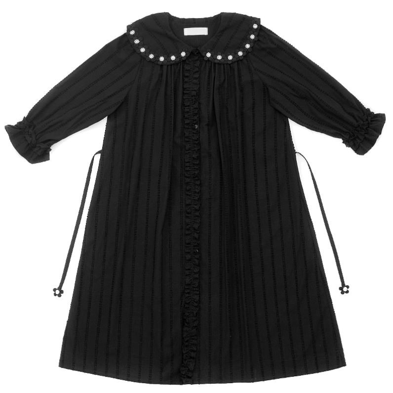 然而和风娃娃领连衣裙女秋季新款设计感小众长袖宽松花花收腰裙子热门设计联盟服务商