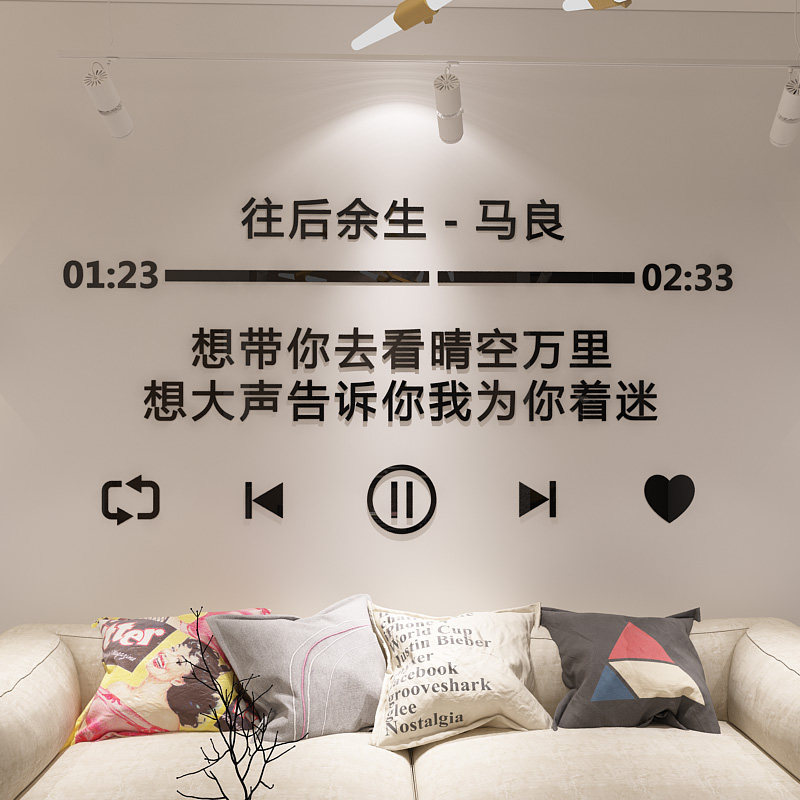 ins北欧风歌词墙贴3d立体贴纸客厅卧室自粘贴画温馨宿舍墙面装饰热门设计联盟服务商
