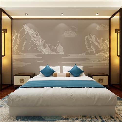 热卖的新中式山象抽水壁画电视墙景墙壁纸客厅沙发背纸影视墙纸。热门设计联盟服务商