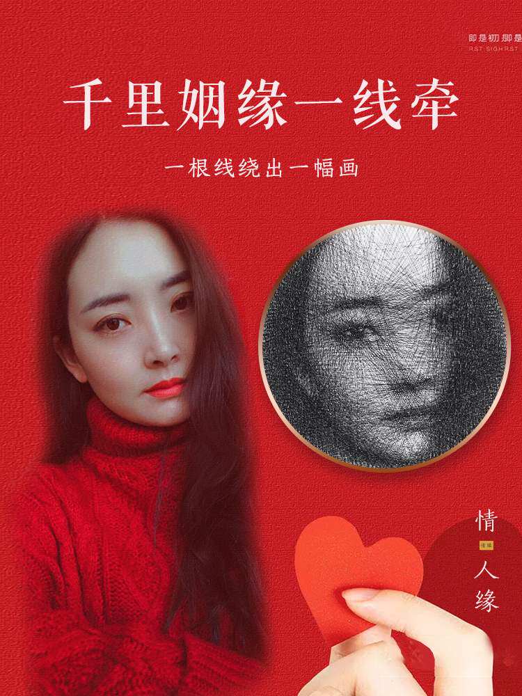 线拼图画人像钉子绕线画diy手工制作缠弦丝画创意人物定制照片生热门设计联盟服务商
