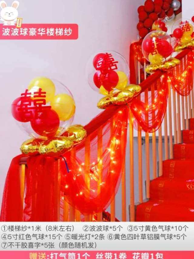 楼道浪漫开业楼梯装饰花A幔扶手结婚气球婚庆婚纱布置创意扶梯结热门设计联盟服务商