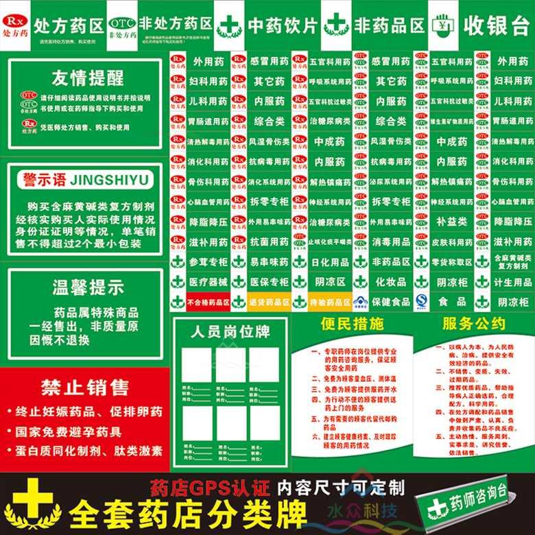 药品分类牌药店分类医院药店标识标志牌标贴标签GSP认证全套定。热门设计联盟服务商