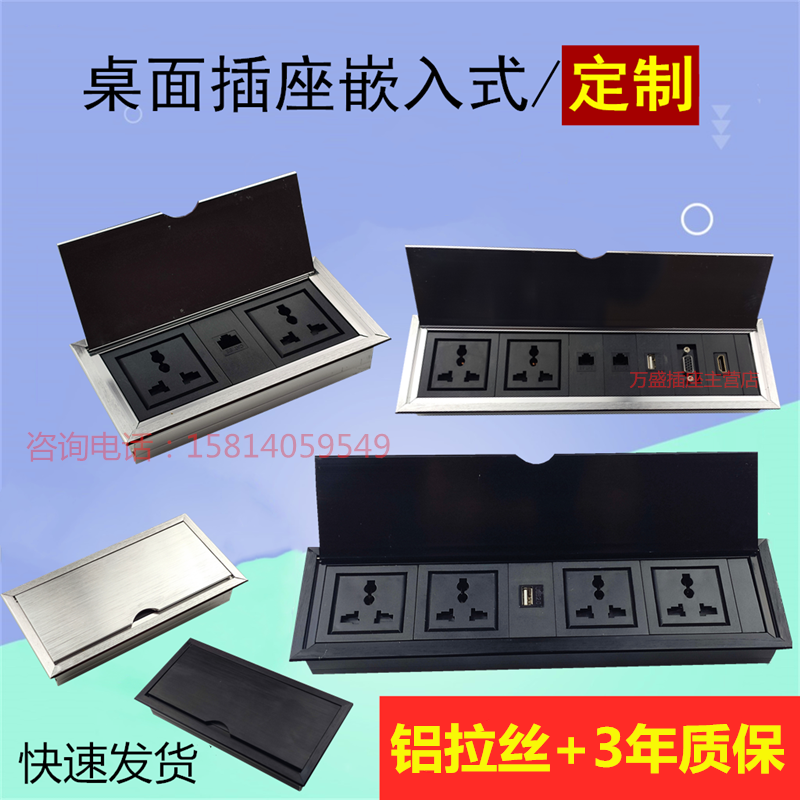 桌面多媒体插座隐藏嵌入式信息盒 usb会议办公桌面板多功能接线盒热门设计联盟服务商