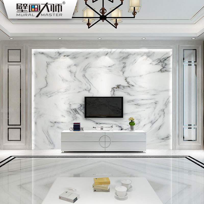 电视背景墙壁纸现代简约大气仿大理石影视墙壁画客厅沙发无缝墙布热门设计联盟服务商