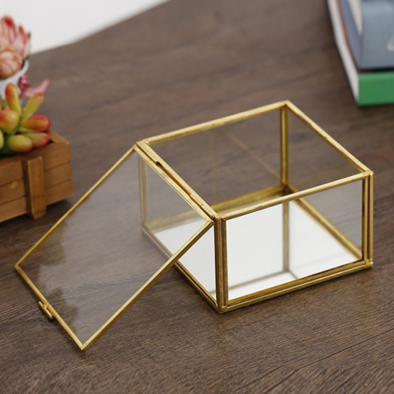 简约复古金边欧式玻璃首饰盒珠宝收纳盒伴手礼微景观几何方形花房热门设计联盟服务商