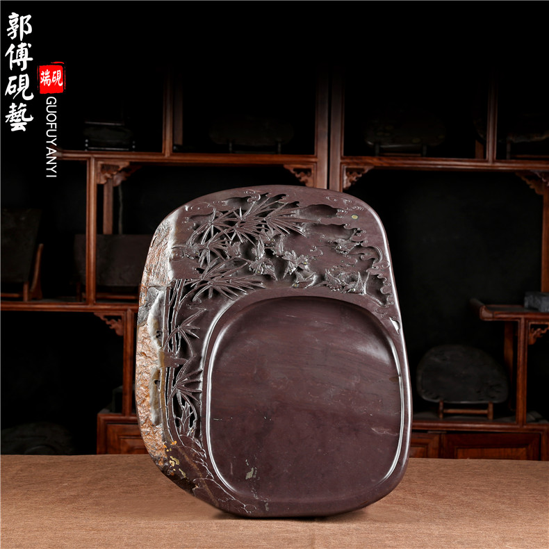 郭傅砚艺砚传名师作品文房四宝书法用品送礼佳肇庆端砚麻子坑砚台石砚手工制作《百鸟归巢》珍贵天然石眼热门设计联盟服务商