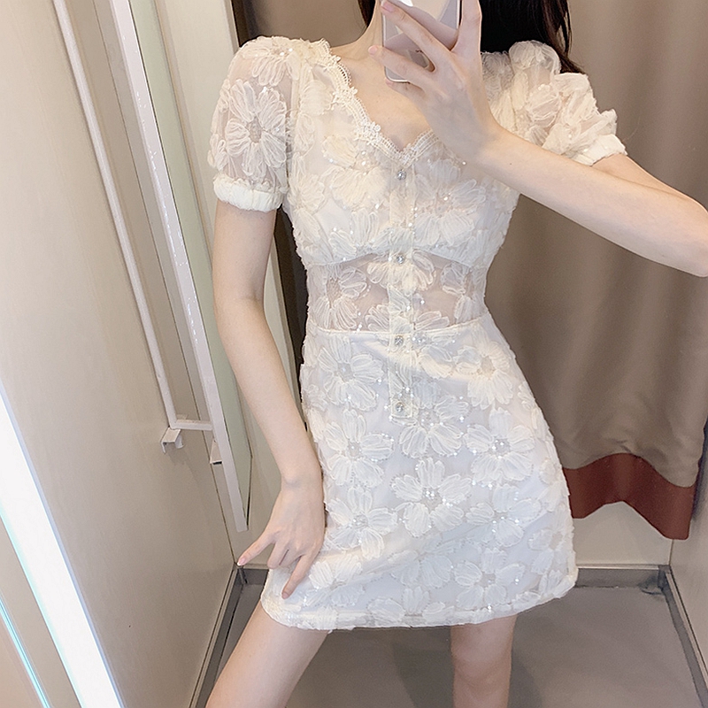 轻奢蕾丝纱连衣裙设计感小众可盐可甜假两件高级感镂空短裙子夏装热门设计联盟服务商