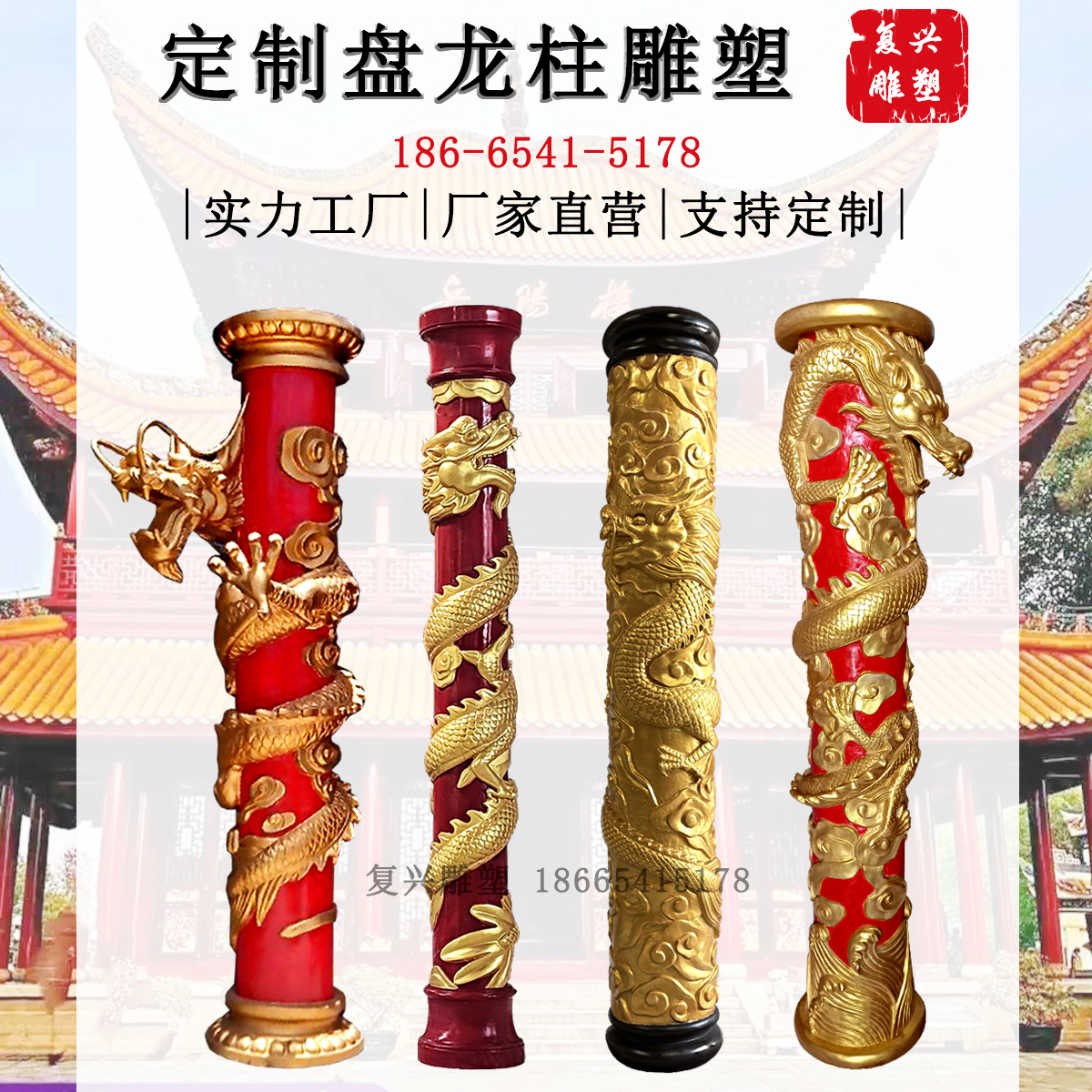 砂岩树脂龙雕传统中式浮雕圆雕龙柱龙头挂件广场文旅景观摆件装饰